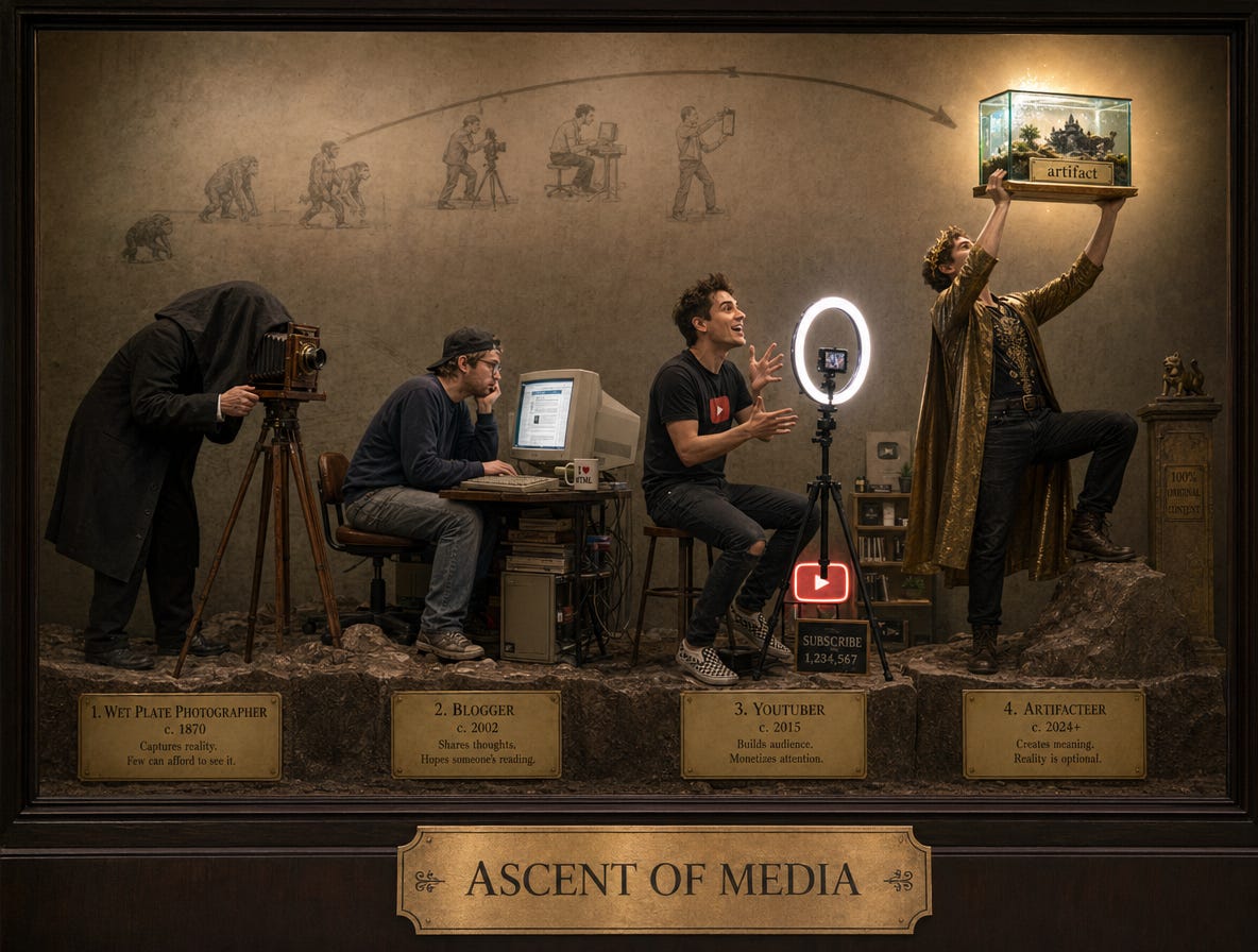 The pattern: new medium → democratized production → social layer emerges around the new unit of the medium.